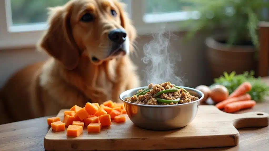 Hundebesitzer, die sich dabei wiederfinden, einen Kühlschrank voller Hähnchenschenkel anstatt Putenhackfleisch anzustarren, oder deren Hunde ihre Nasen bei Spinat rümpfen wie wählerische Kleinkinder, können dieses Rezept leicht modifizieren, ohne sein Nährwertfundament zu zerstören. Unter den Proteinalternativen funktionieren mageres Rinderhackfleisch, Hähnchenbrust oder Lachs nahtlos, obwohl Rindfleisch gründlich abgetropft werden muss, um fettinduzierte Verdauungsrebellion zu vermeiden. Bei den Gemüseoptionen ersetzen Süßkartoffeln Karotten mit gleicher Begeisterung, während grüne Bohnen sich als Ersatz für Erbsen eignen, und Grünkohl einspringt, wenn sich Spinat als diplomatisch inakzeptabel für anspruchsvolle Hundegaumen erweist, die kulinarische Vielfalt suchen.